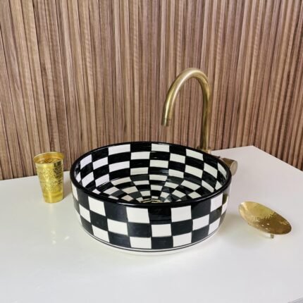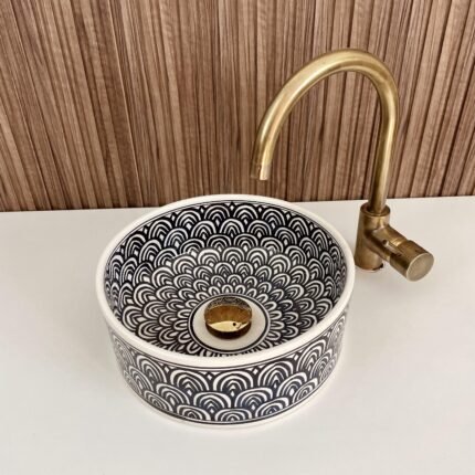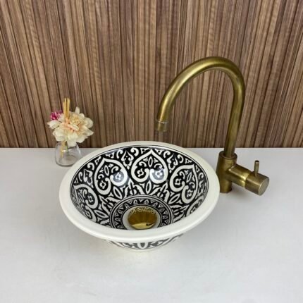 Black&White Moroccan Handmade Ceramic Wash-Basin