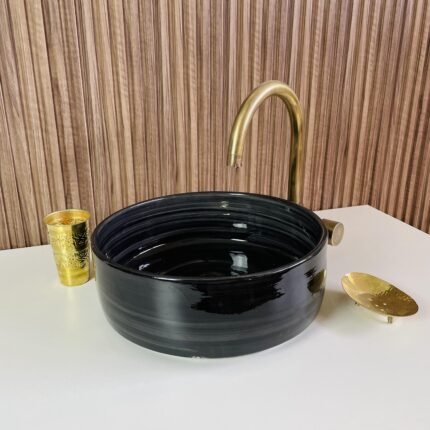 Artisan Ceramic Vessel Sink – Moroccan Style with Brass Accent