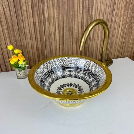Amazing Ceramic Sink with Brass Edge – Handcrafted Moroccan Basin