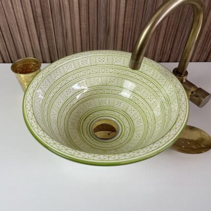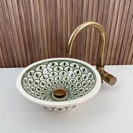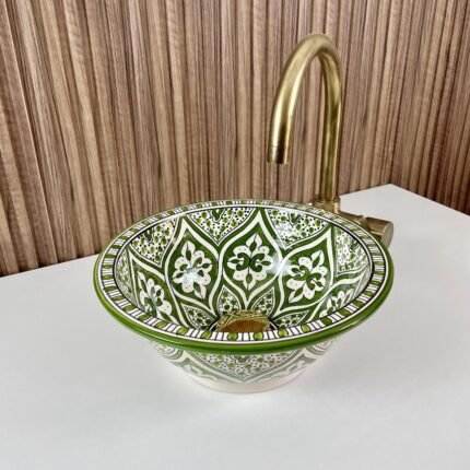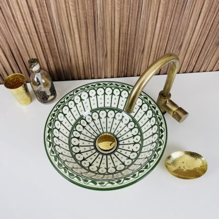 Hand-Painted Green Moroccan Ceramic Washin Sink