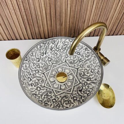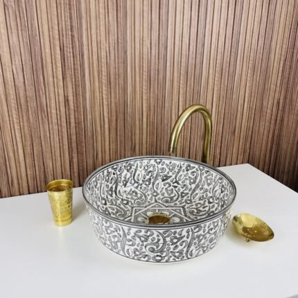 Gray Hand-painted Moroccan Ceramic Bowl Basin