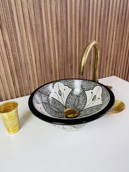 Hand-Painted Moroccan Ceramic Wash-Basin Black&White