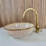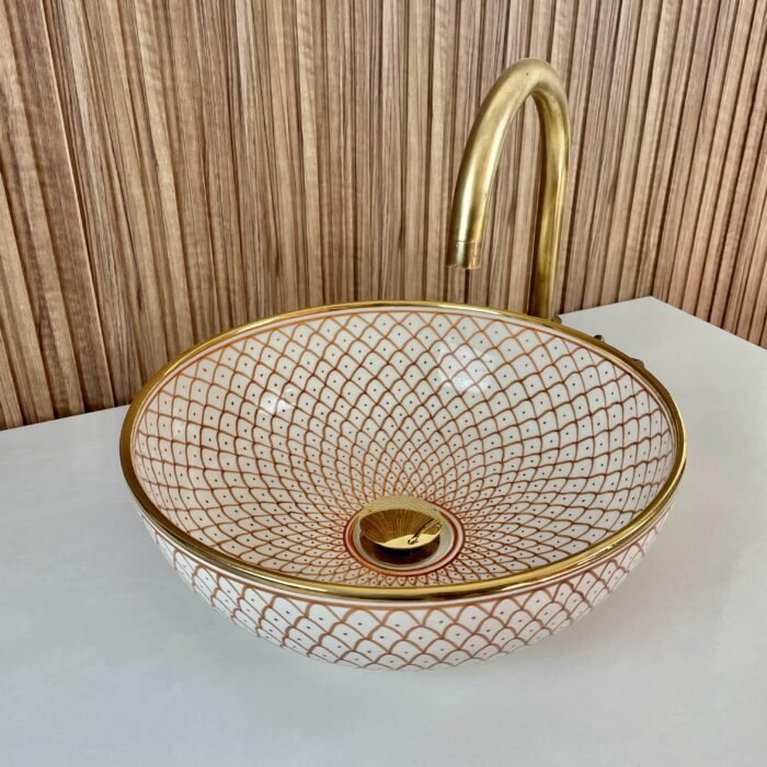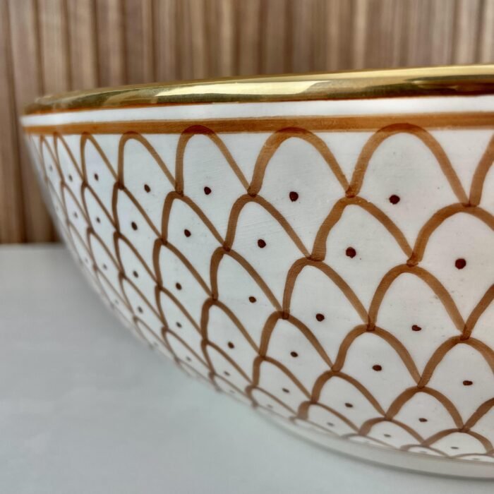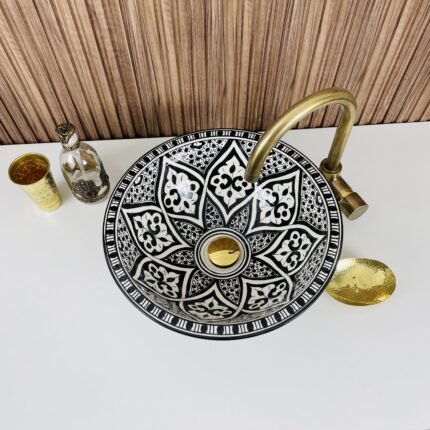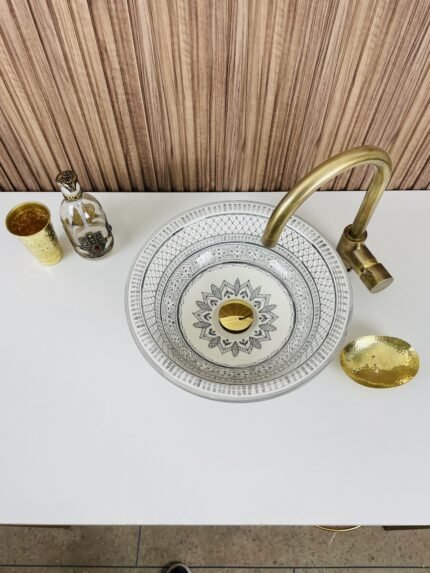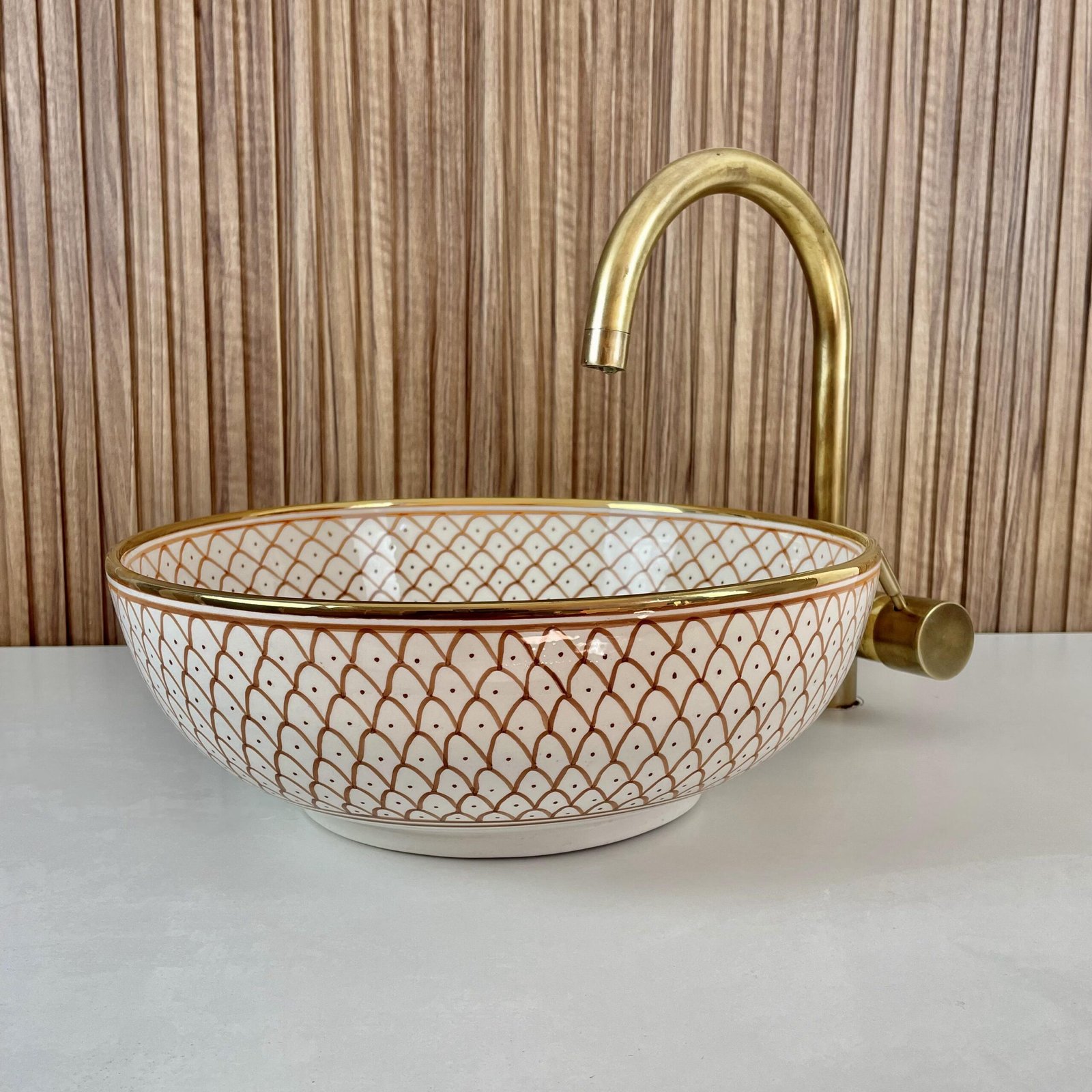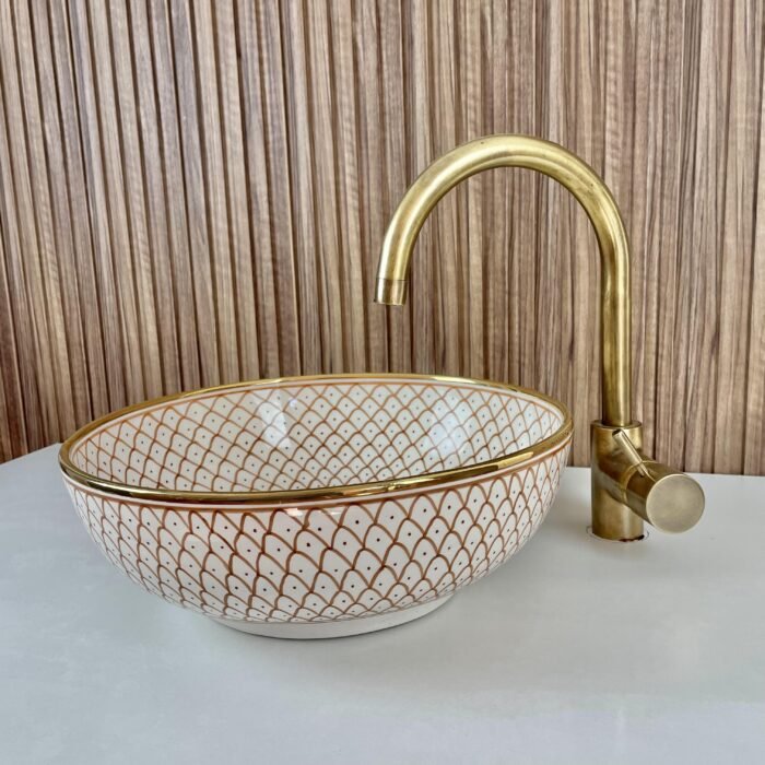 14K Gold Accent Ceramic Sink – Handcrafted Moroccan Bathroom Elegance