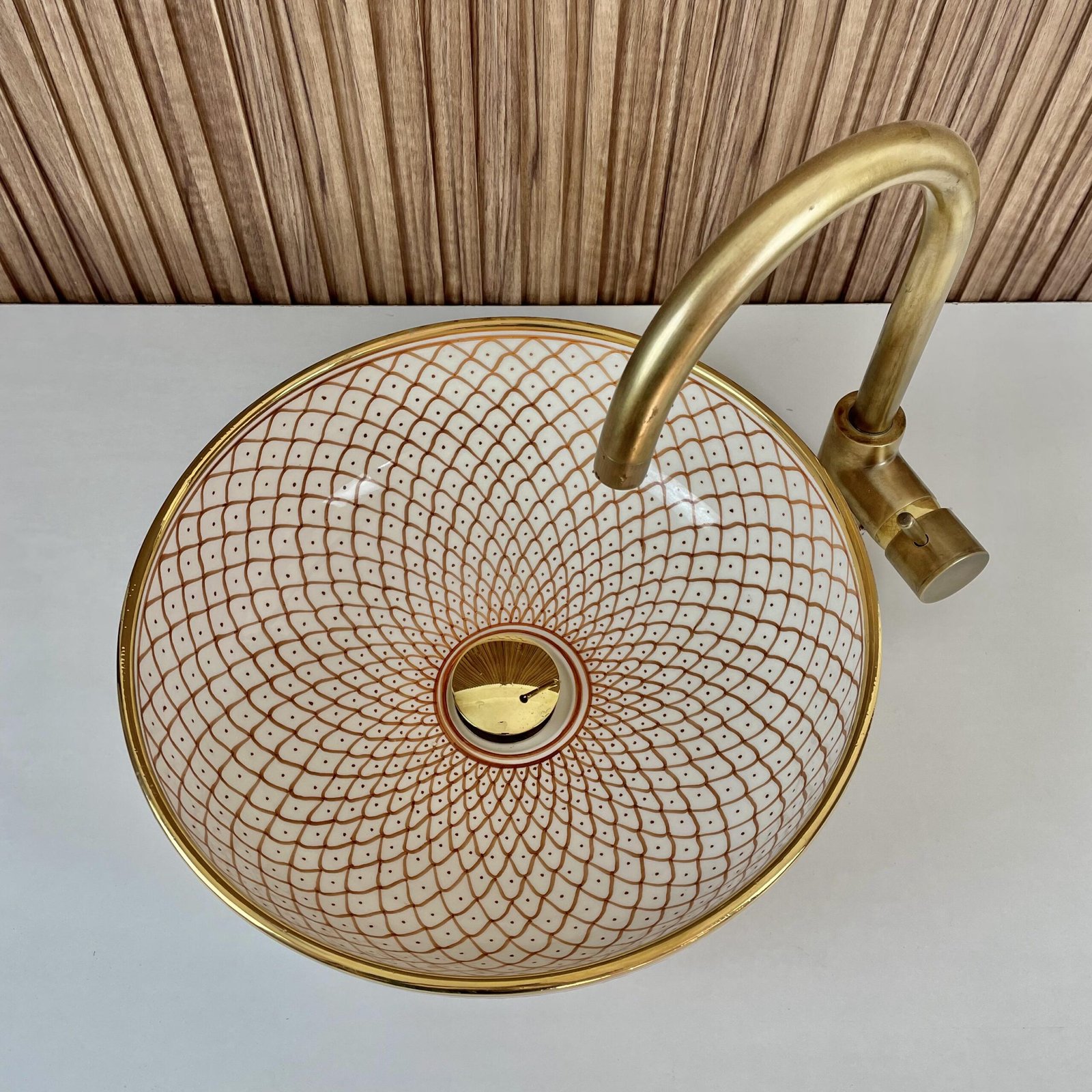 Artisan Ceramic Vessel Sink – Moroccan Style with Brass Accent
