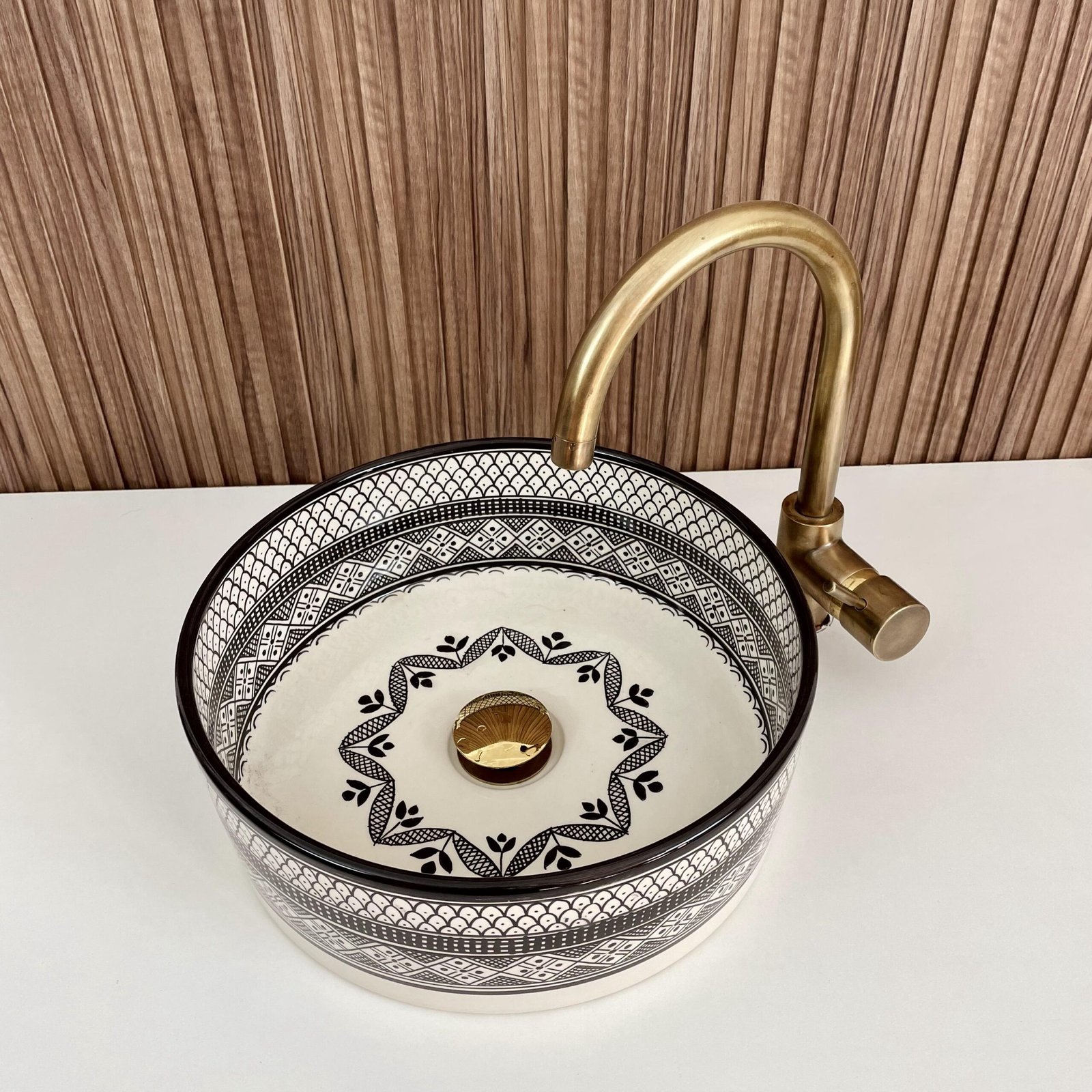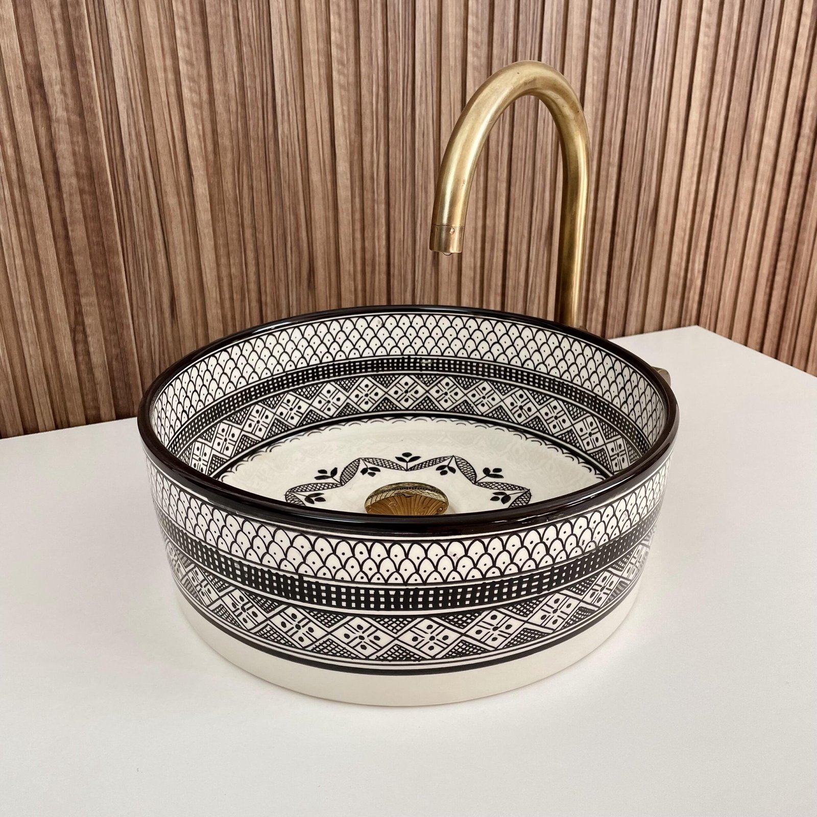 Artisan Ceramic Vessel Sink – Moroccan Style with Brass Accent
