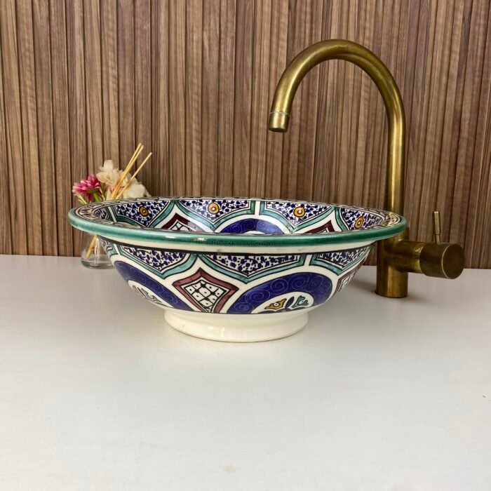 Colorful Hand-Painted Moroccan Ceramic Basin