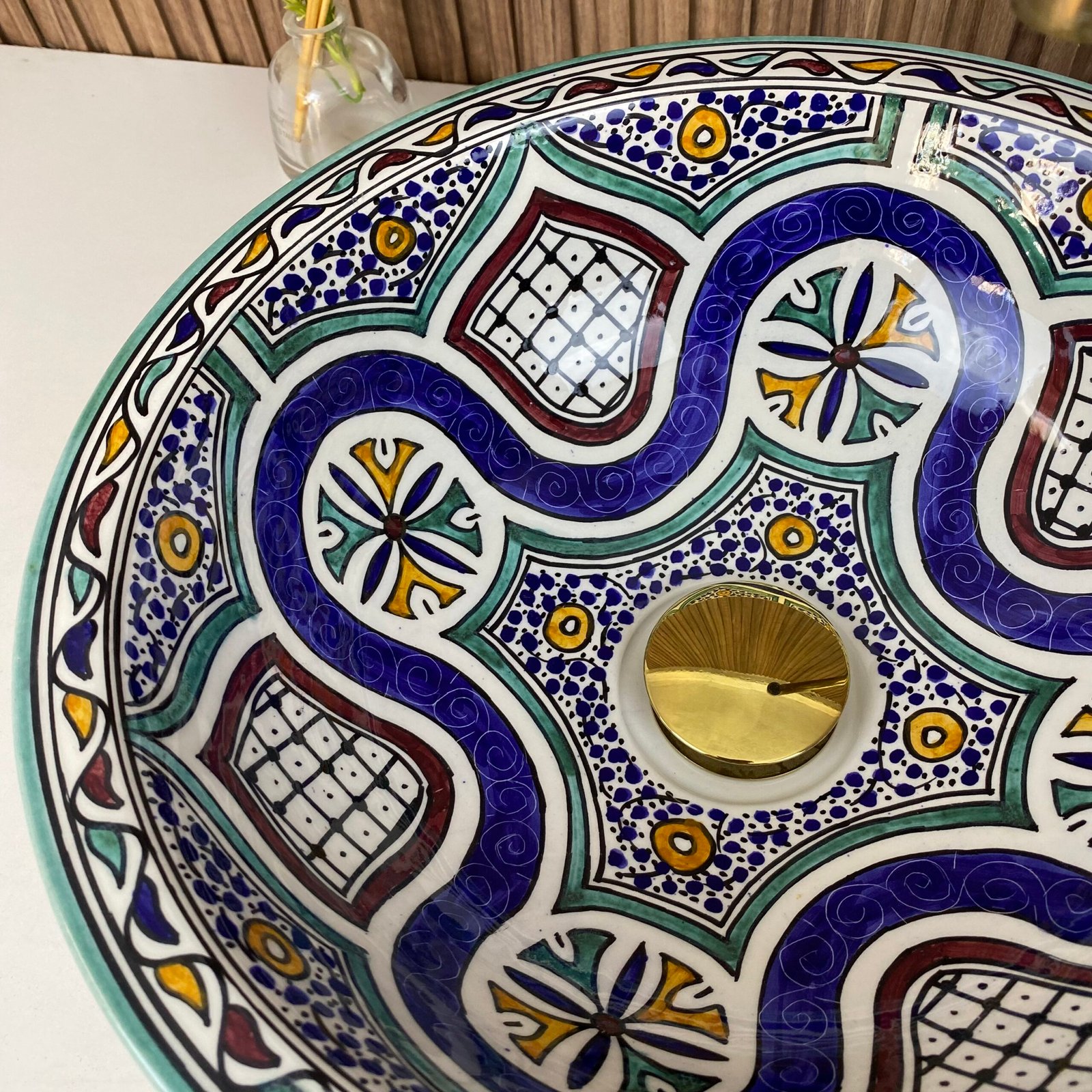 Immerse yourself in the timeless elegance of our handmade Moroccan ceramic basins, crafted by skilled artisans from the historic city of Fes. Renowned for centuries as a hub of craftsmanship, Fes embodies the prestigious heritage of Moroccan pottery, passed down through generations. Each basin is a unique masterpiece, inspired by traditional techniques and iconic patterns that celebrate the rich cultural legacy of this imperial city.