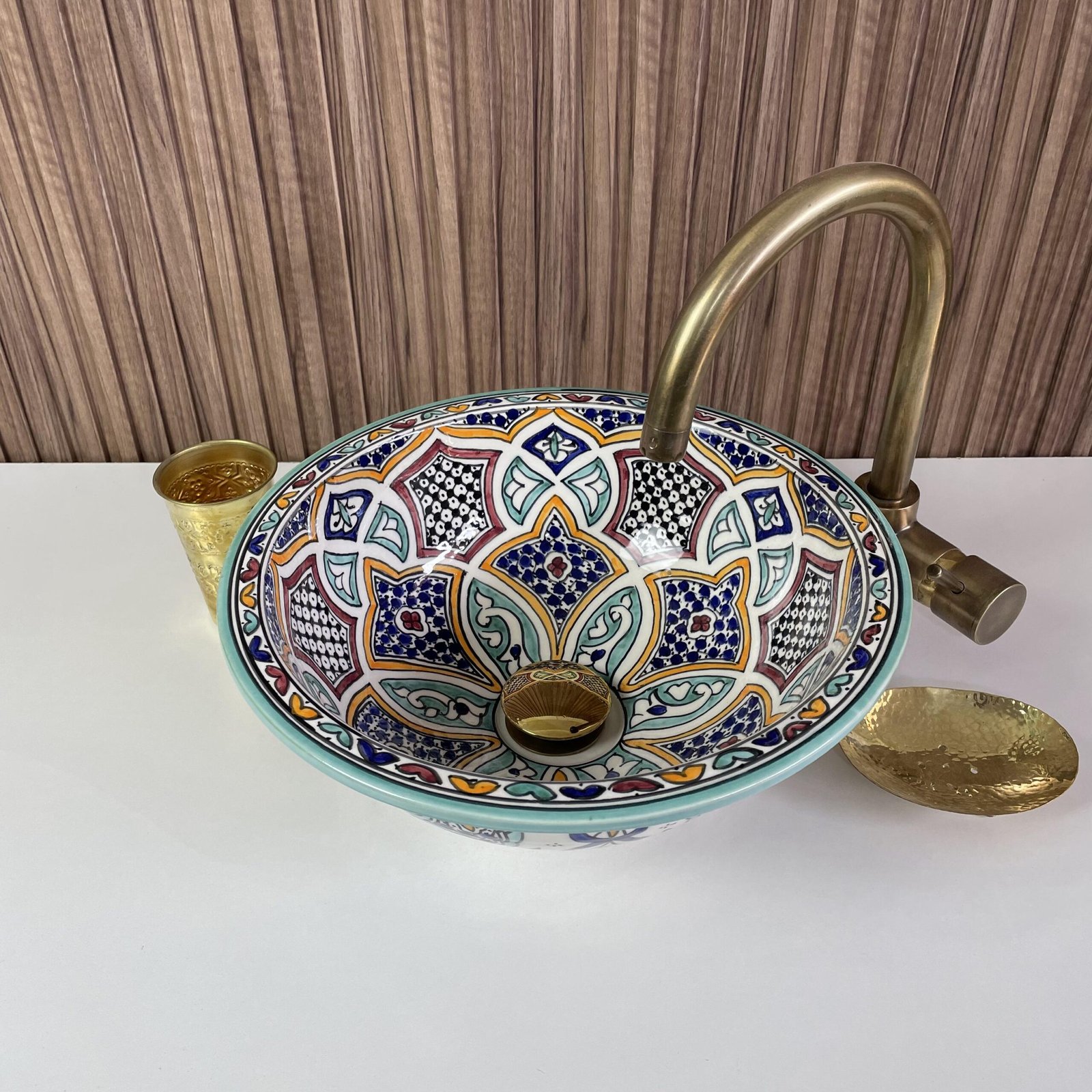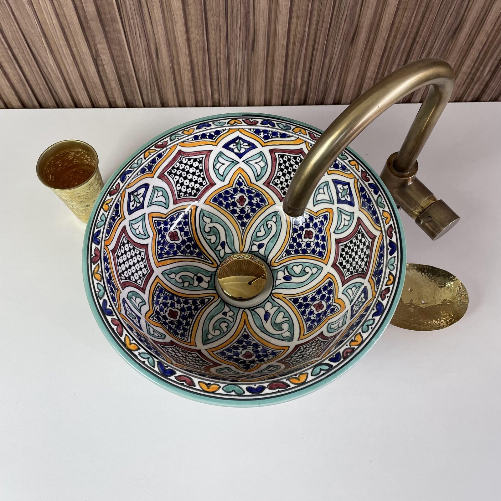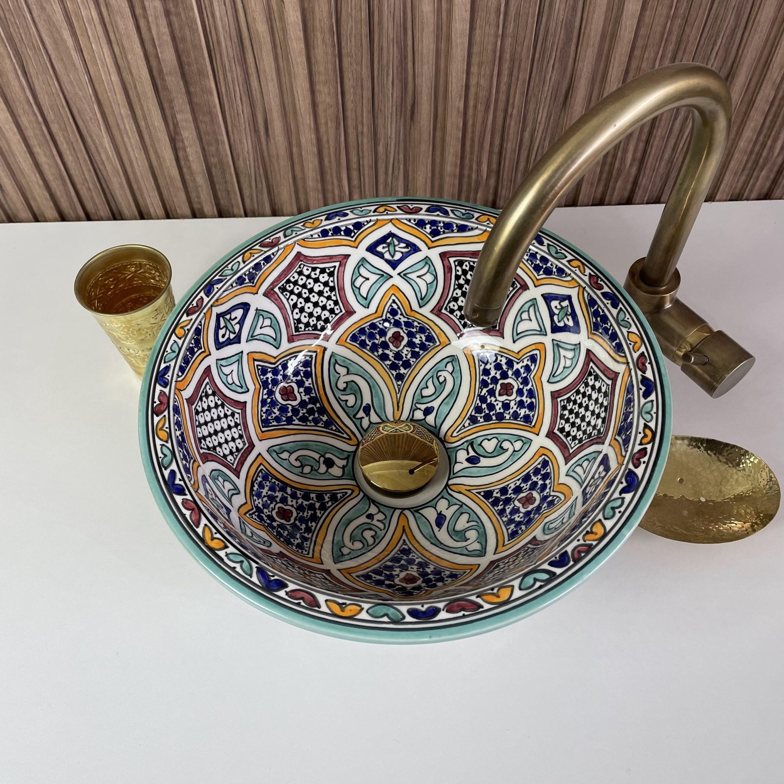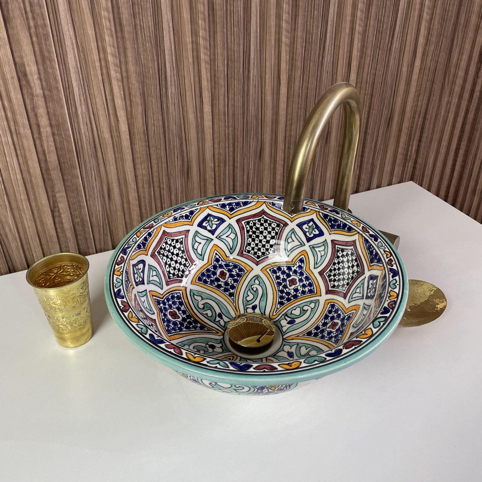 Colorful Hand-Painted Moroccan Ceramic Vessel Sink