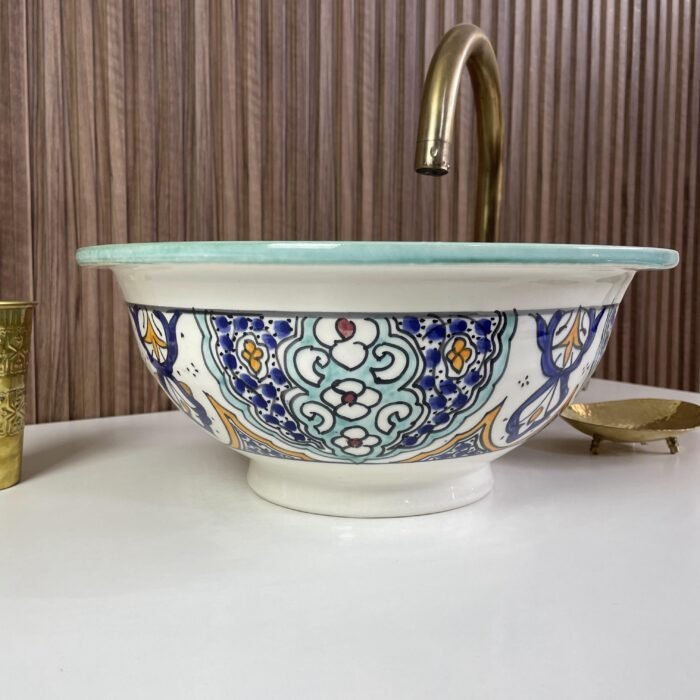 Elegant Bathroom Sink – Moroccan Handmade Ceramic Basin