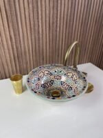 Decorative Ceramic Sink with Brass Edge – Handcrafted Moroccan Basin