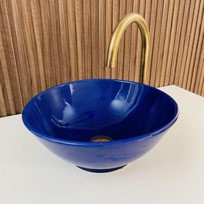 Hand-Painted Blue Moroccan Ceramic Washin Sink