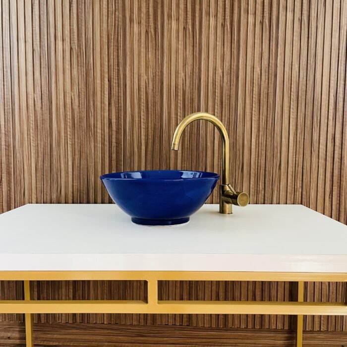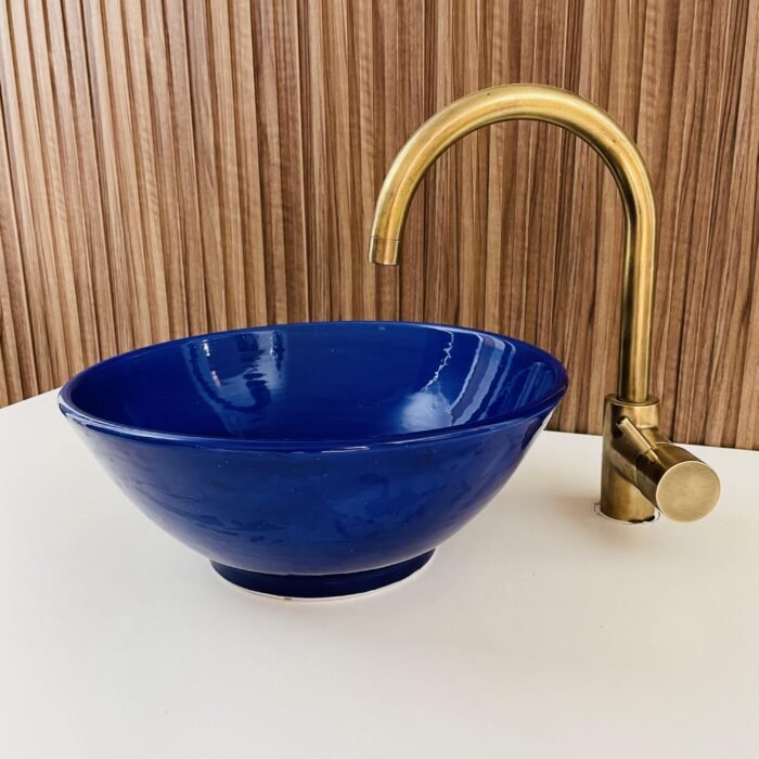 Decorative Ceramic Sink with Brass Edge – Handcrafted Moroccan Basin
