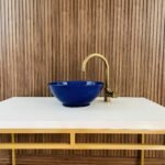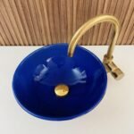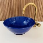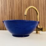 Dark Blue Ceramic Sink With Mid-Century Modern