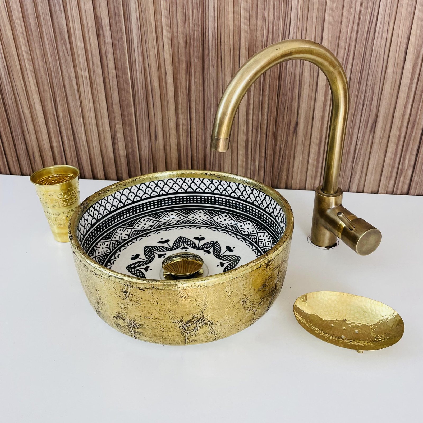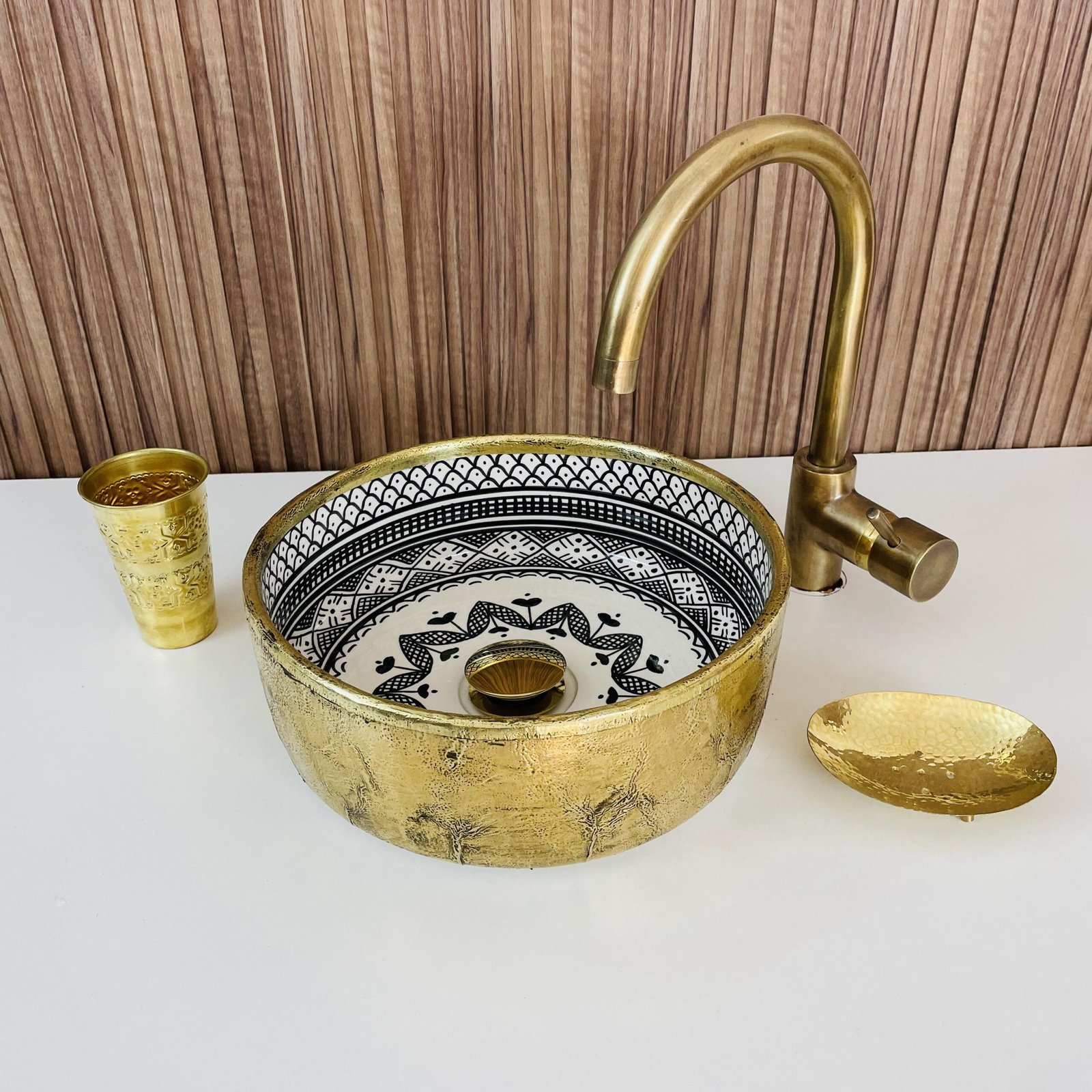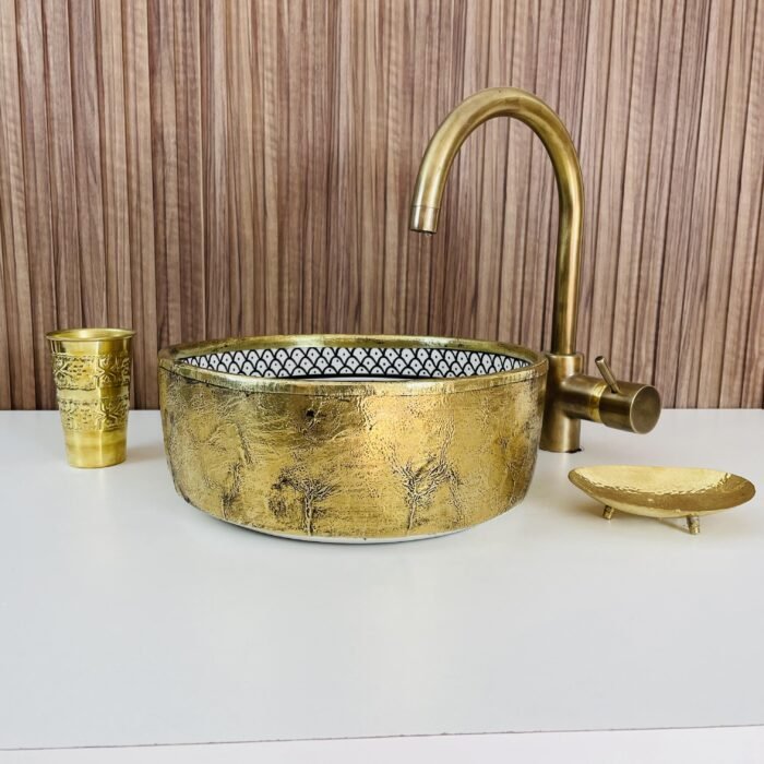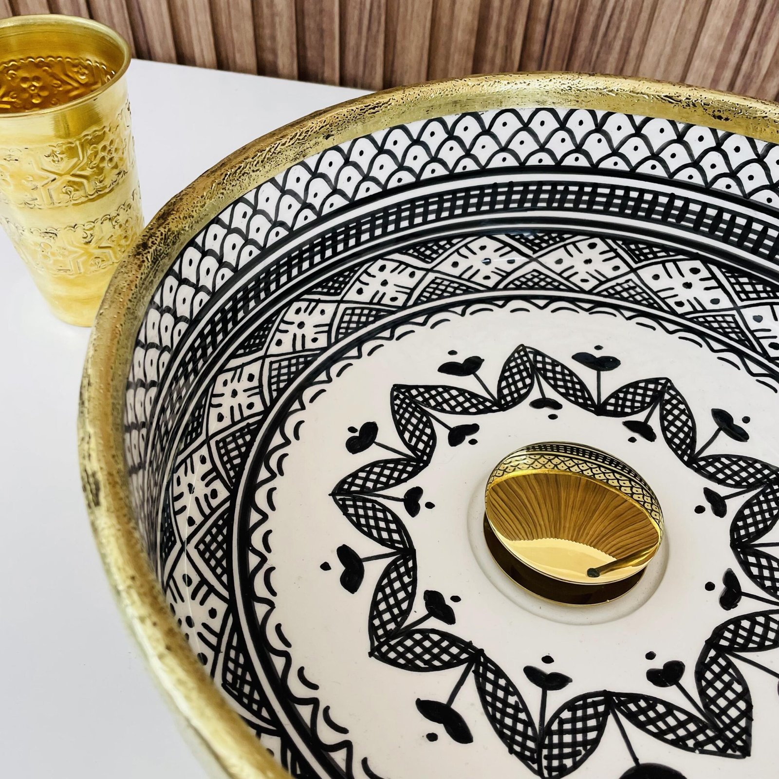 Decorative Ceramic Sink with Brass Edge – Handcrafted Moroccan Basin