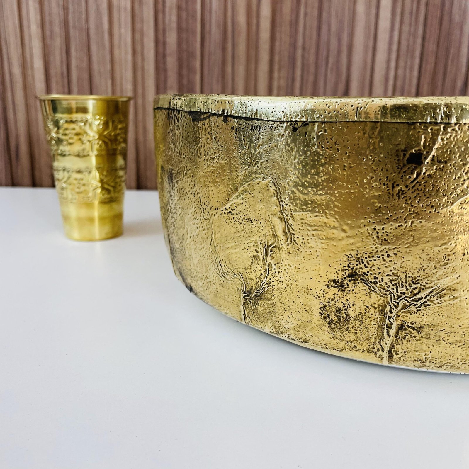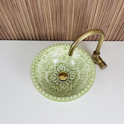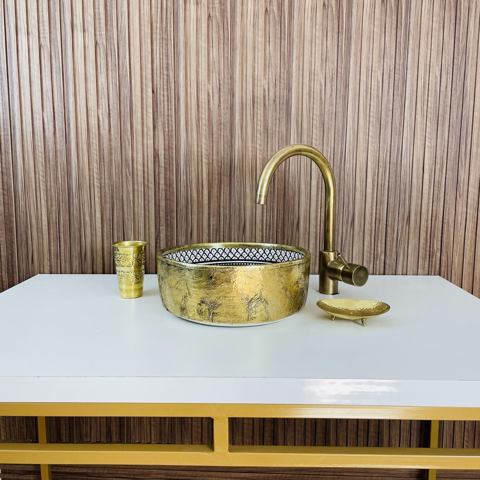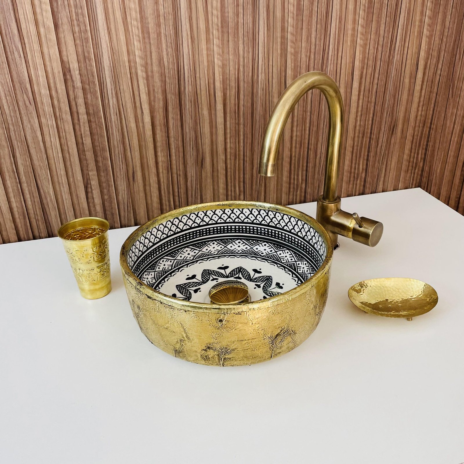 Decorative Ceramic Sink with Brass Edge – Handcrafted Moroccan Basin