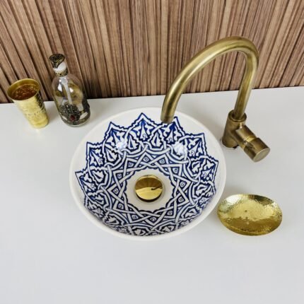 Hand-Painted Blue Moroccan Ceramic Washin Sink