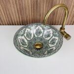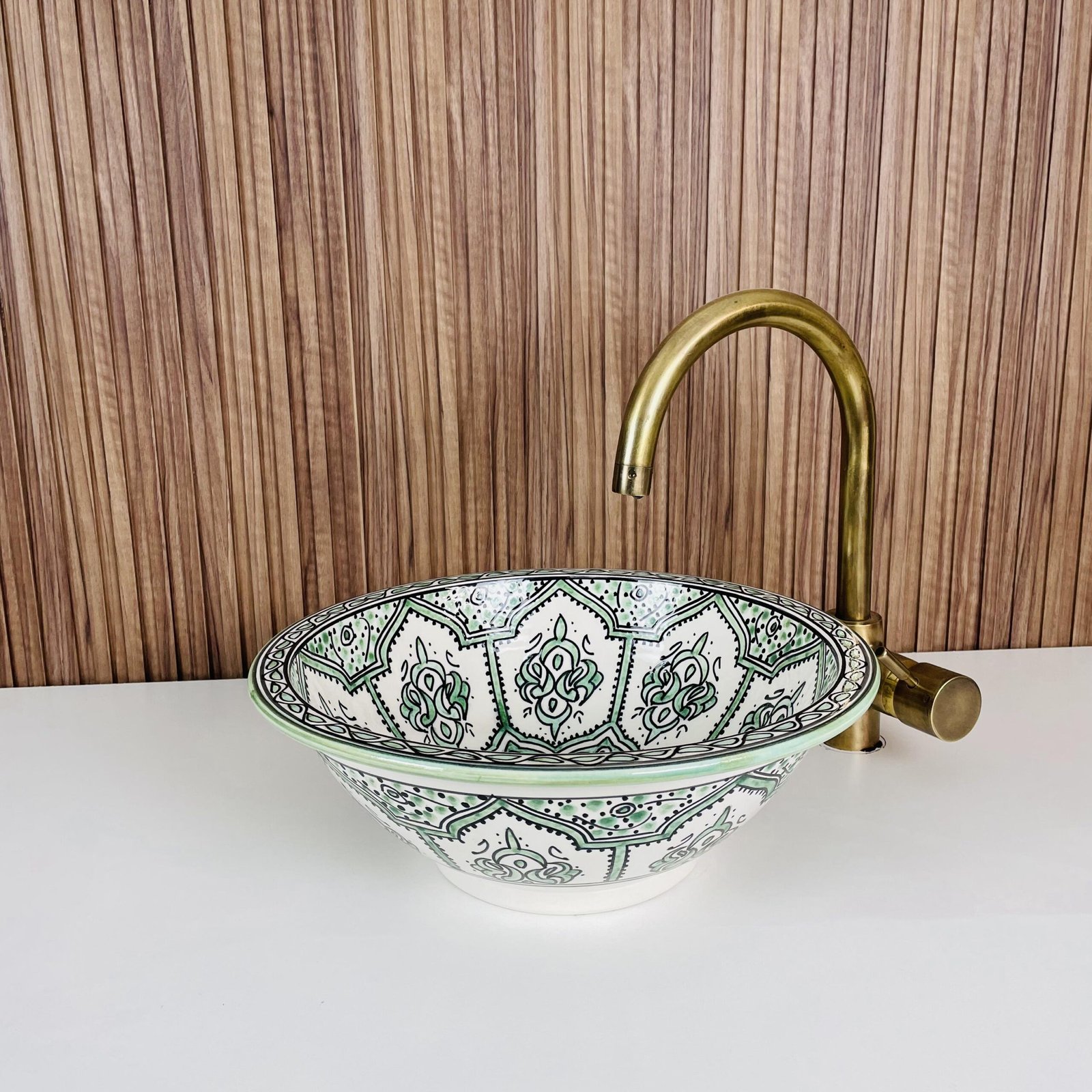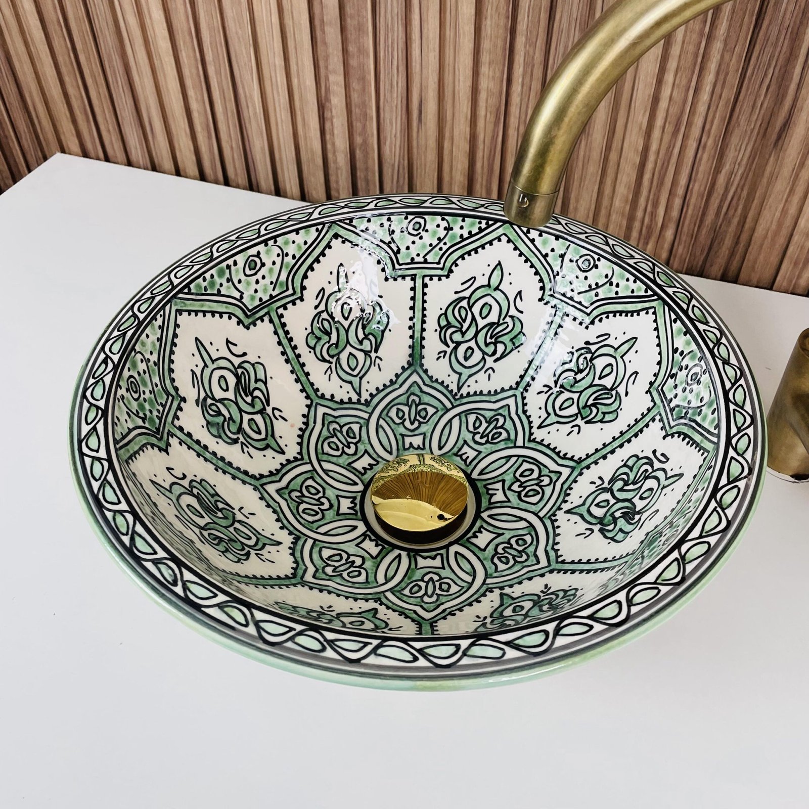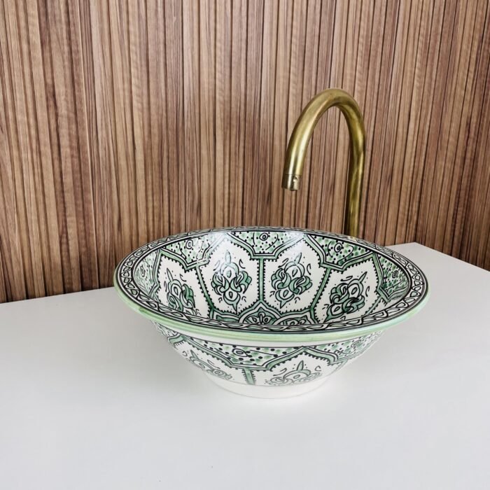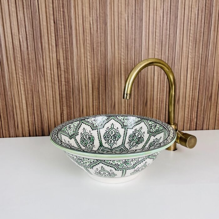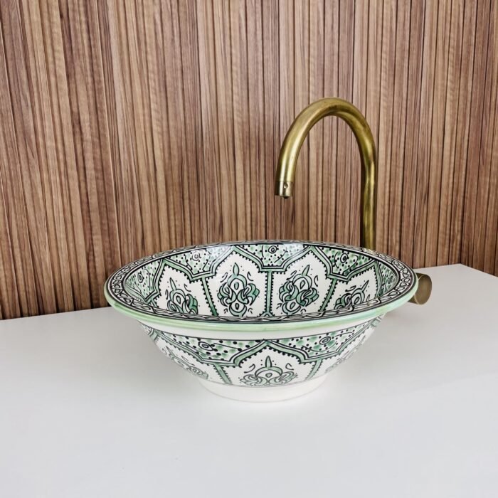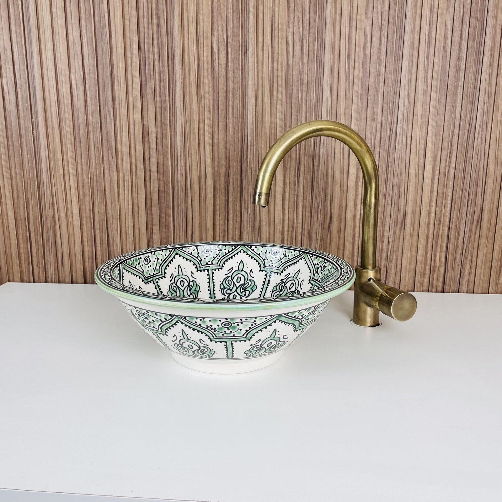 Moroccan Ceramic Vessel Sink – Brass Accent Bathroom Wash Basin