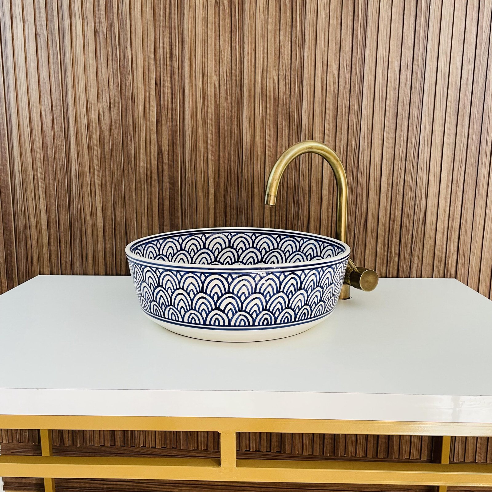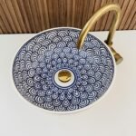 Artisan Ceramic Vessel Sink – Moroccan Style with Brass Accent