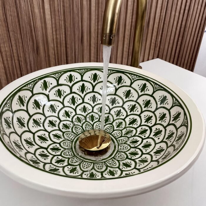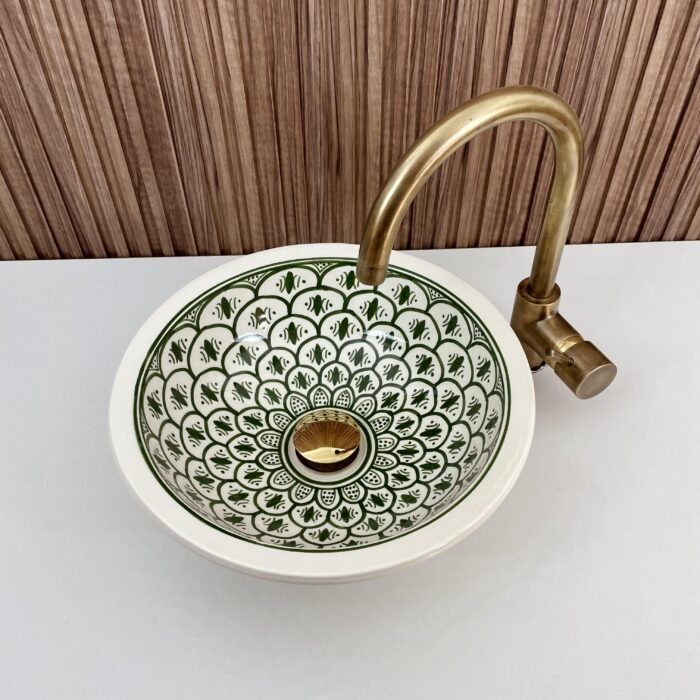 Artisan Ceramic Vessel Sink – Moroccan Style with Brass Accent