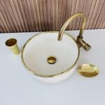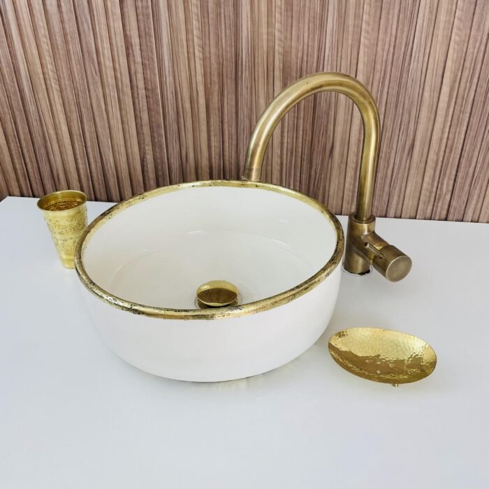 Elegant 14K Gold Edge Ceramic Sink – Handmade Moroccan Basin