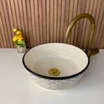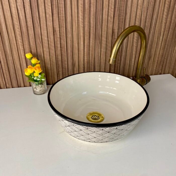 Moroccan Ceramic Vessel Sink – Brass Accent Bathroom Wash Basin