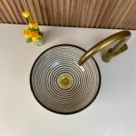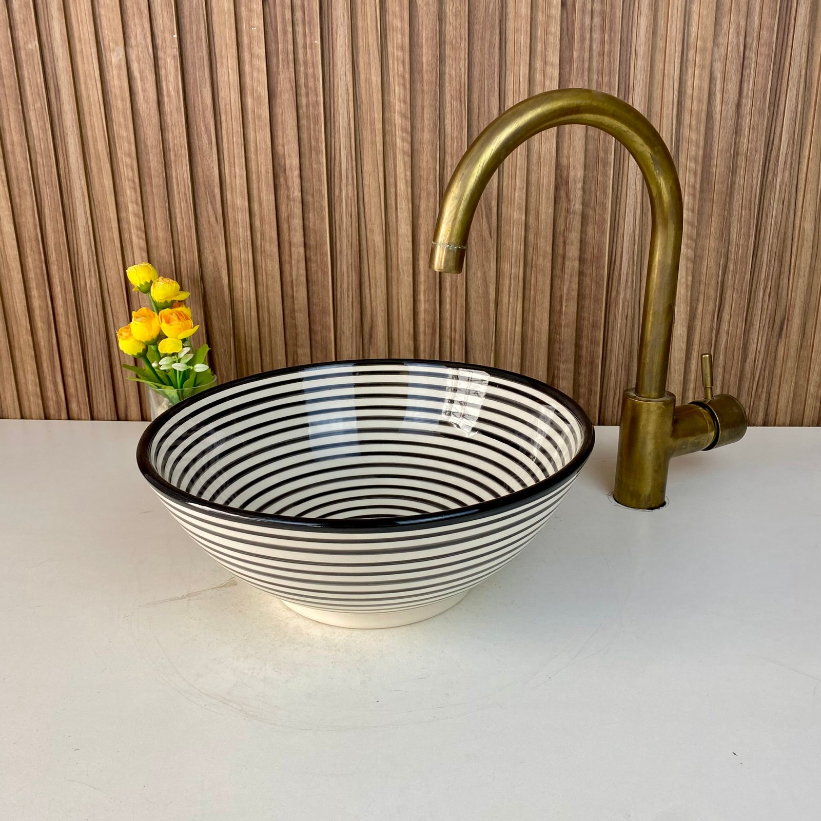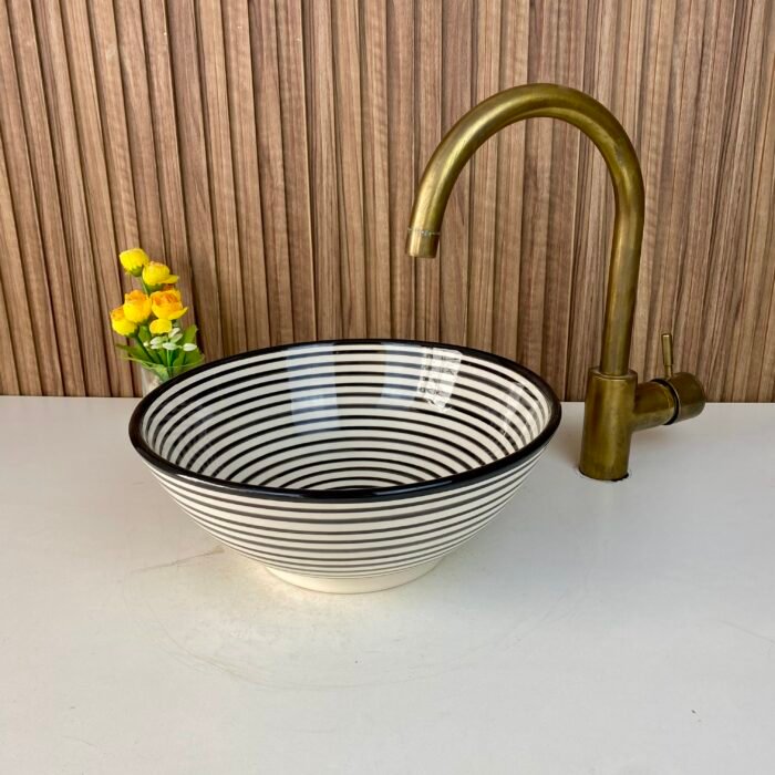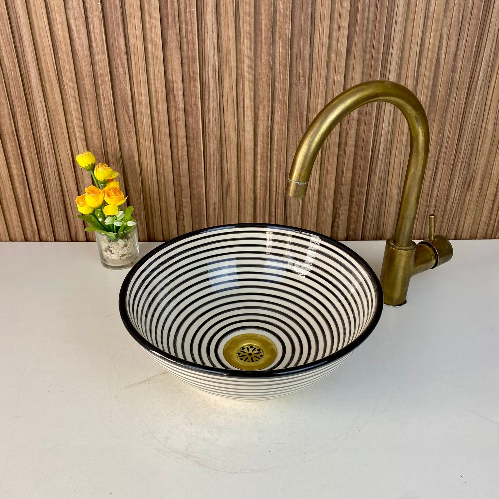 Moroccan Ceramic Vessel Sink – Brass Accent Bathroom Wash Basin