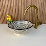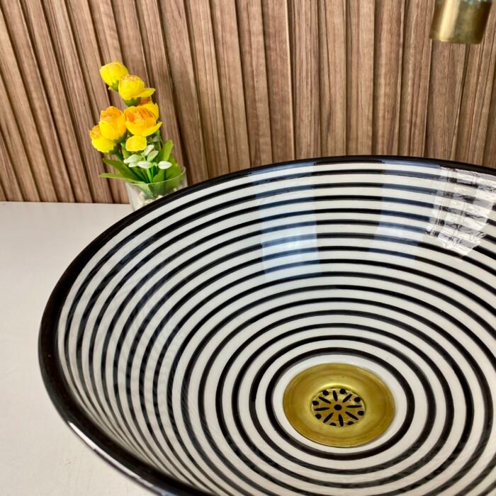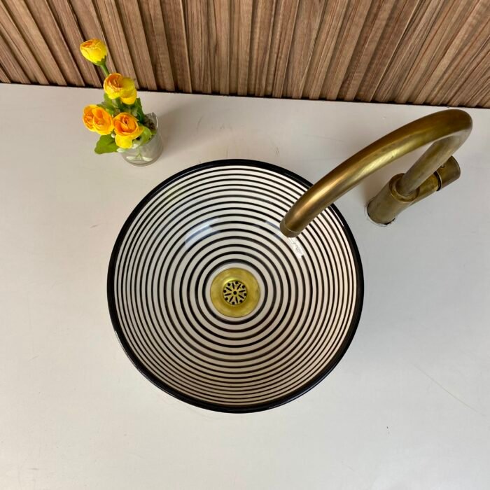 Handcrafted Ceramic Basin with Brass Rim – Moroccan Bathroom Elegance