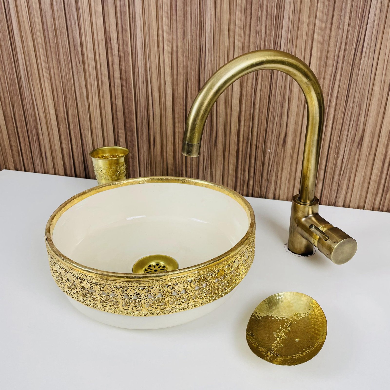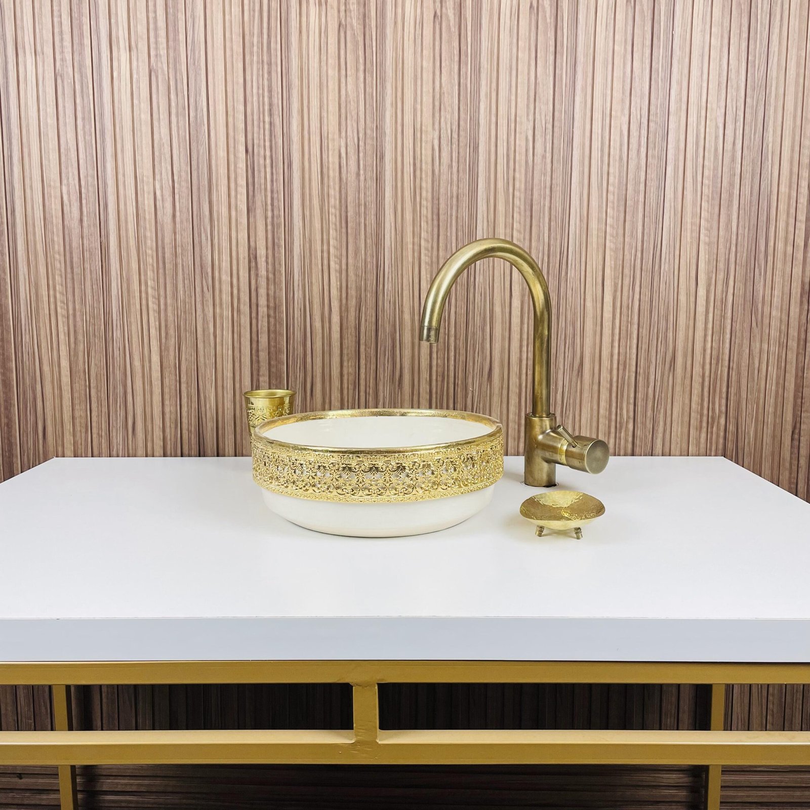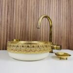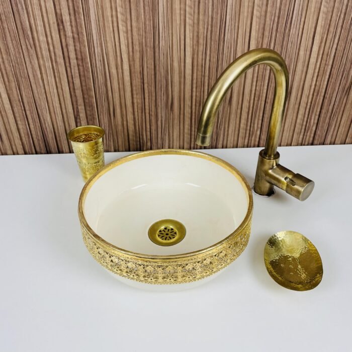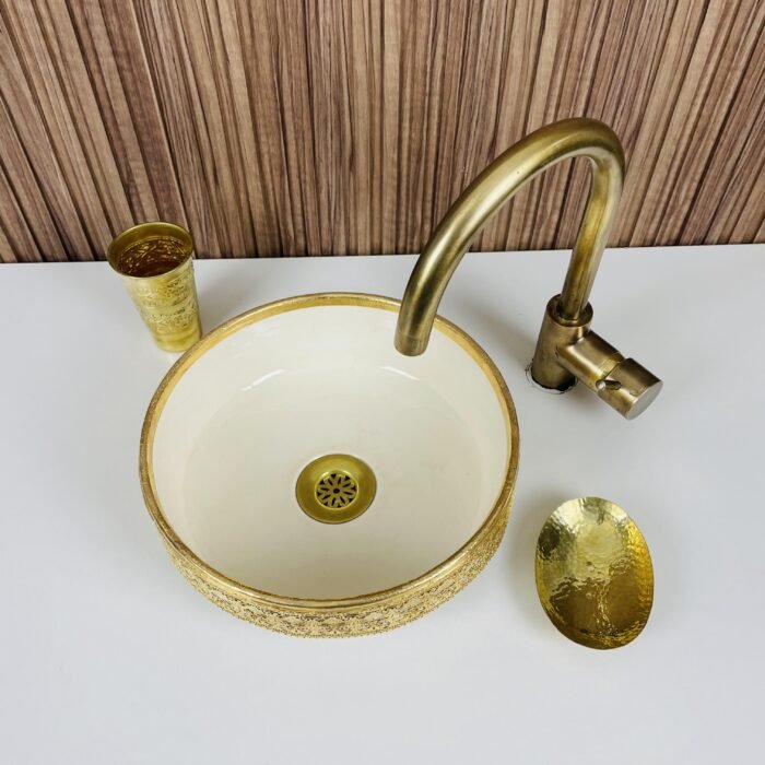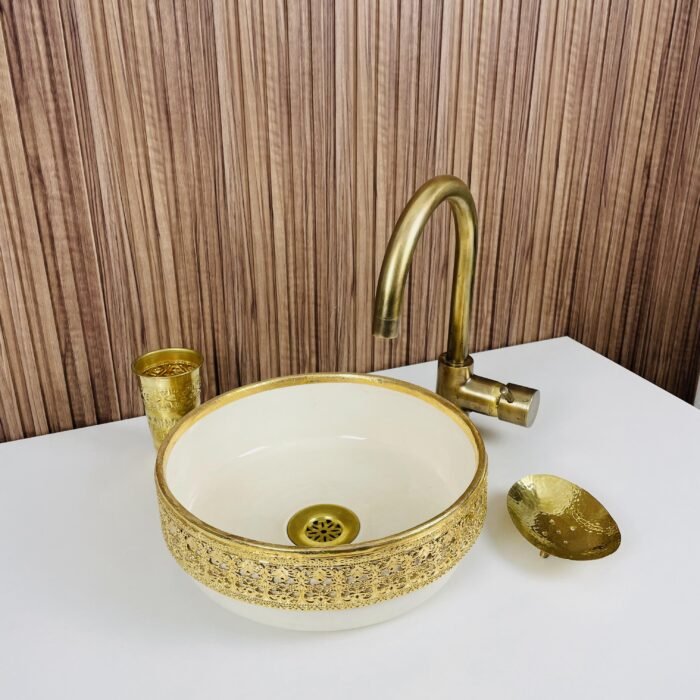 Moroccan Ceramic Vessel Sink – Brass Accent Bathroom Wash Basin