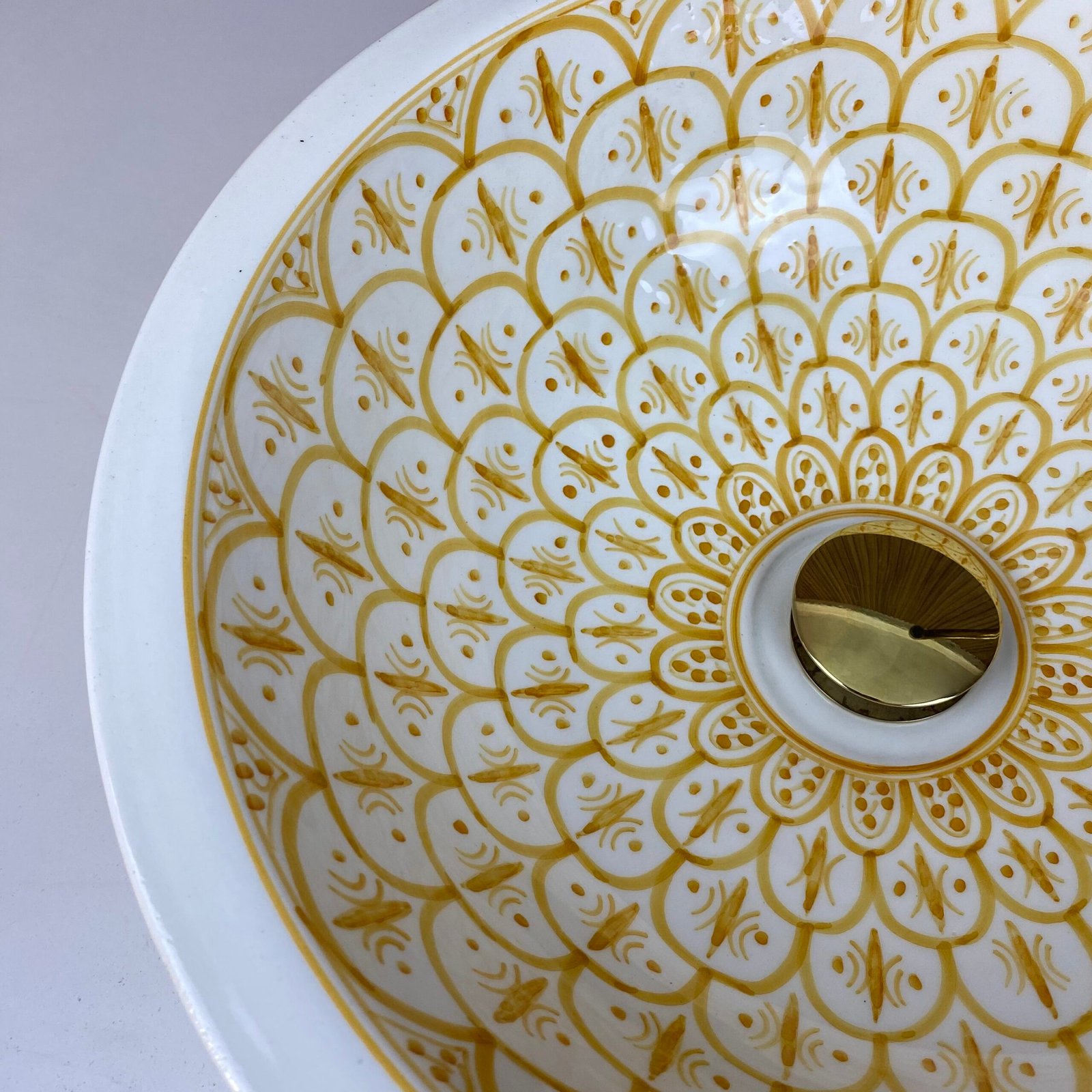 Hand-Painted Ceramic Sink with Brass Rim – Elegant Moroccan Design