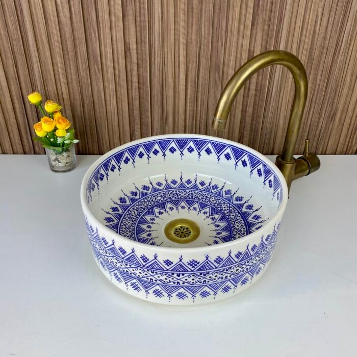 Elegant Bathroom Sink – Moroccan Handmade Ceramic Basin