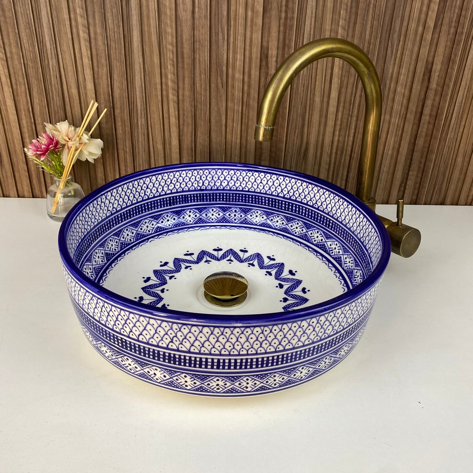 Wanderful Blue Hand-painted Moroccan Ceramic Bowl Sink