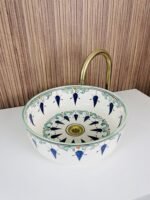 Hand-Painted Ceramic Sink with Brass Rim – Elegant Moroccan Design