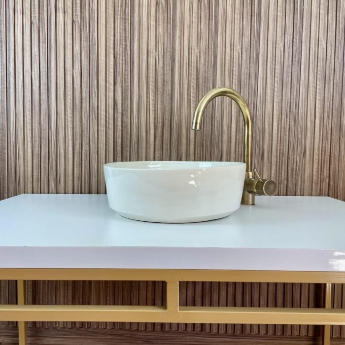 Elegant 14K Gold Edge Ceramic Sink – Handmade Moroccan Basin
