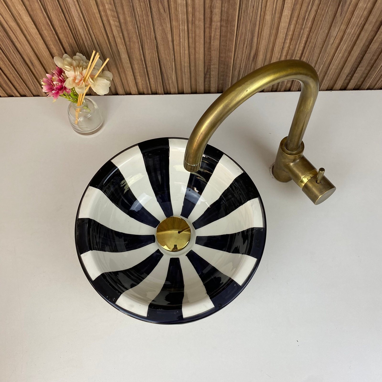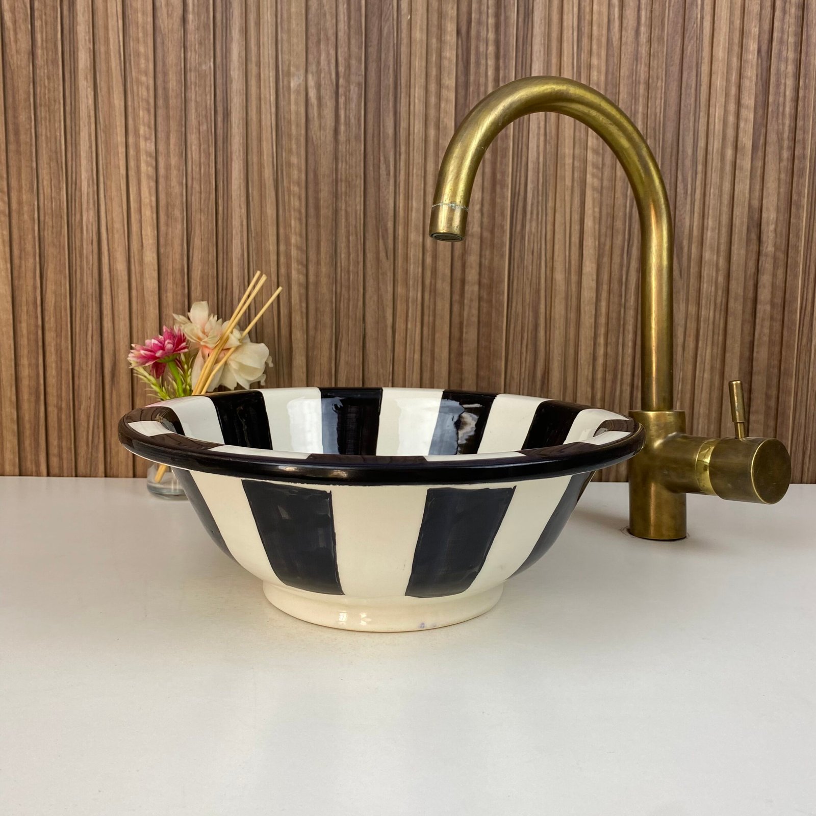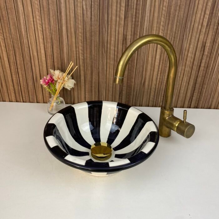 Zibra Moroccan Handmade Ceramic Sink-Basin With Mid-Century